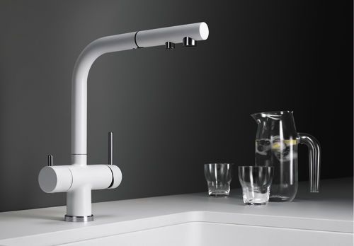 Удобный смеситель «3 в 1»: фильтрованная и нефильтрованная вода подаются через выдвижной шланг.