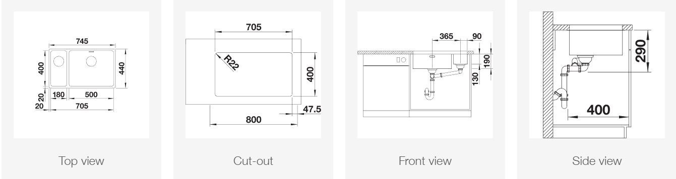 Мойка Blanco ANDANO 500/180-U, чаша слева