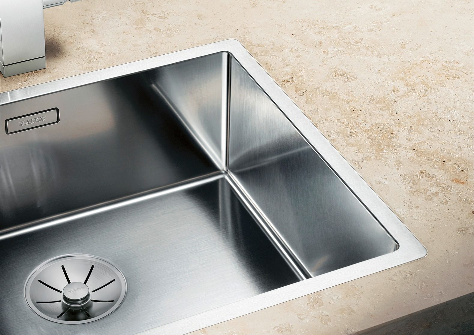 Функциональные качества увеличиваются благодаря маленькому радиусу закругления чаш – всего 10 мм. Плоский кант IF позволяет выполнить установку в один уровень со столешницей без особых усилий. Мойка идет с корзинчатым вентилем, а также практичной отводной арматурой с переливом.