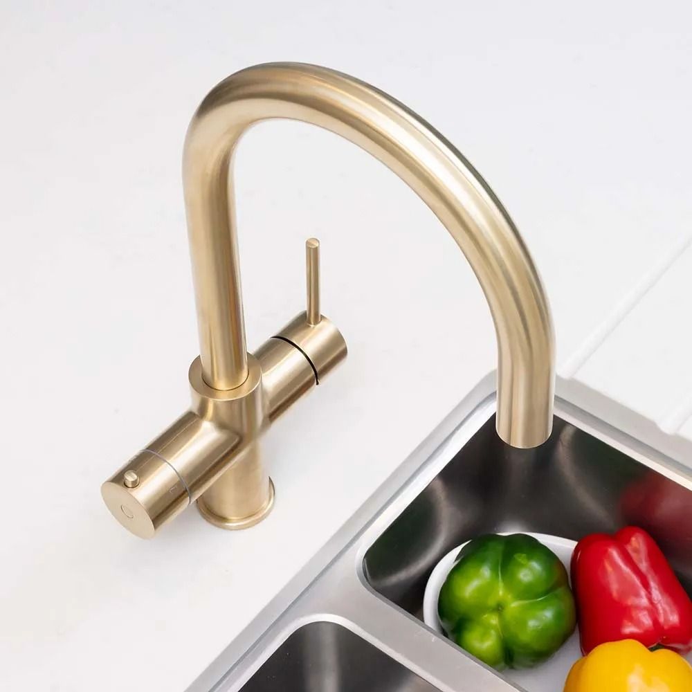 Тип системы4в1. Горячая/холодная вода + кипячение и фильтрованная водаЦветСветлое золото