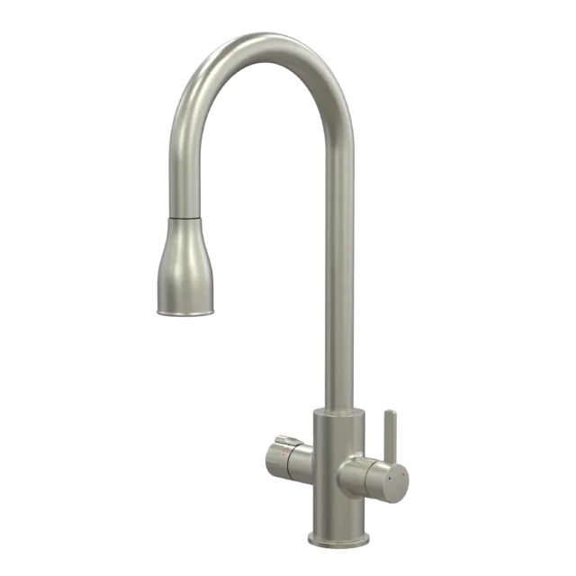 Тип системы4в1. Горячая/холодная вода + кипячение и фильтрованная водаЦветНержавеющая стальВыдвижной изливестьРабота в режимах струя/душесть