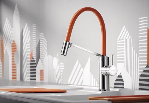 - В комплект смесителя впервые входят четыре цветных съемных шланга: киви, апельсин, лимон и лава (предустановленный цвет)