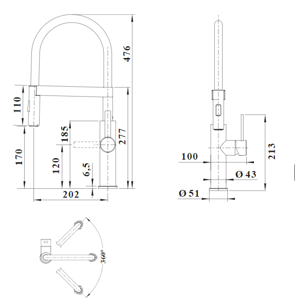 - Гибкий резиновый шланг черного цвета обеспечивает оптимальный диапазон движений