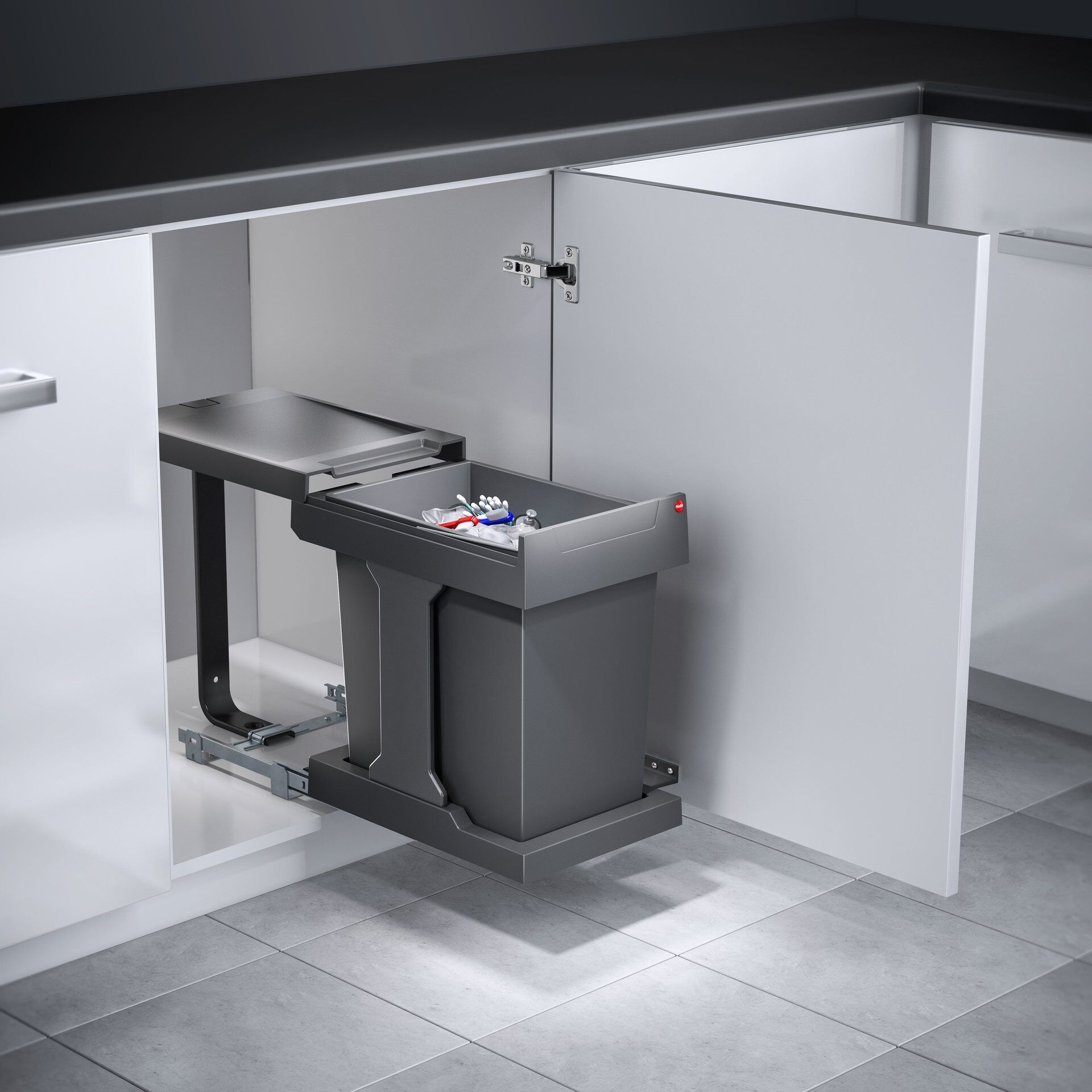 Встраиваемое мусорное ведро 20л Solo Hailo 3636001 выдвигается синхронно