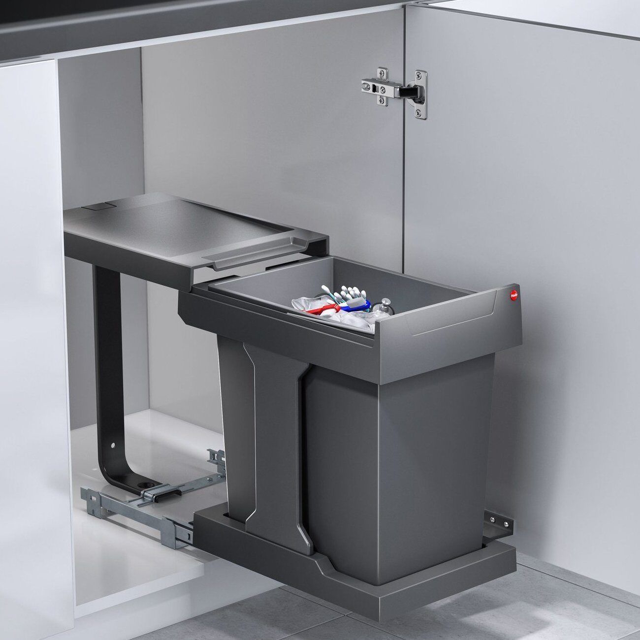 Hailo 3636001 Solo Встраиваемое ведро для мусора 20 литров в шкаф от 40 см с распашной дверью, выдвигается синхронно с фасадом.